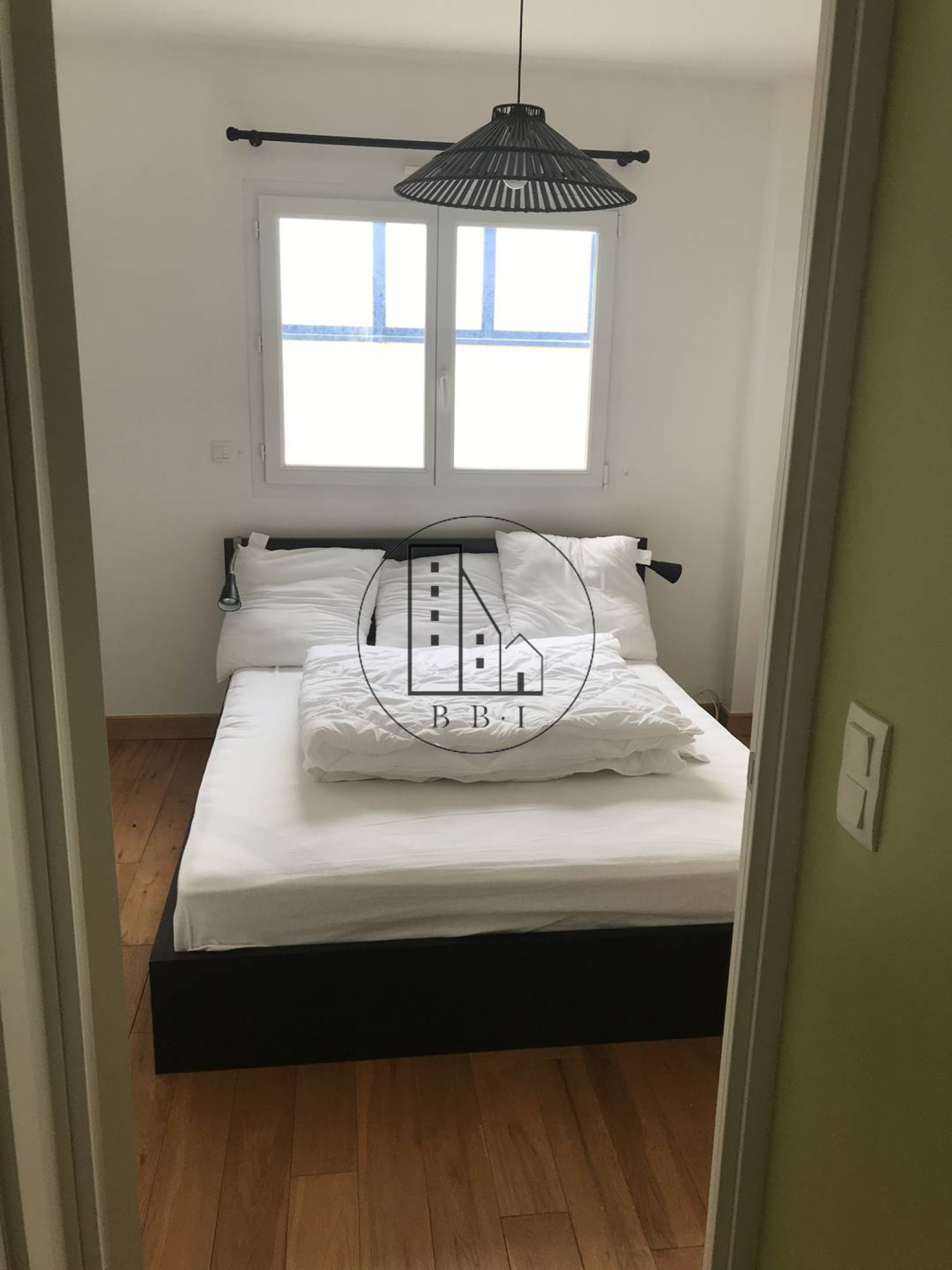 Cette chambre dispose d'un lit double de taille standard (140*190cm) et d'un placard de rangement.